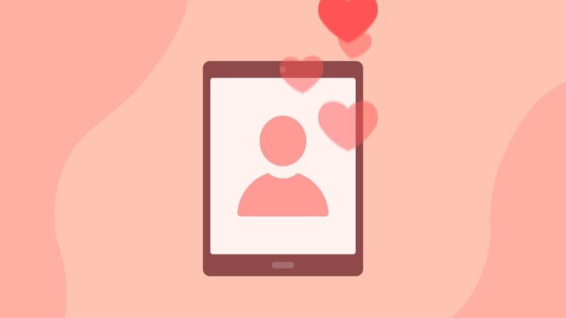 Valentine tablet device. Flat tablet screen showing simple avatar silhouette with floating heart reaction. Digital valentine interaction and online affection concept. Pro Video