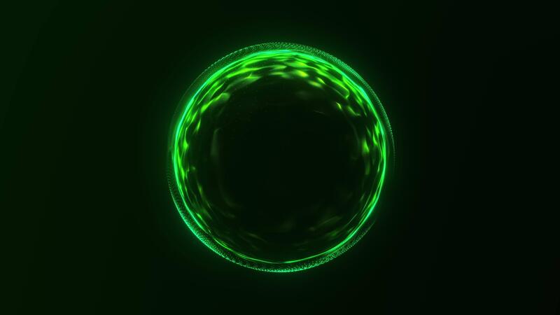 Abstract green neon digital orb with smooth flowing energy lines and glowing particle surface on dark background. Futuristic sci fi motion loop for technology, AI systems, data networks. 4k 60fps Pro Video