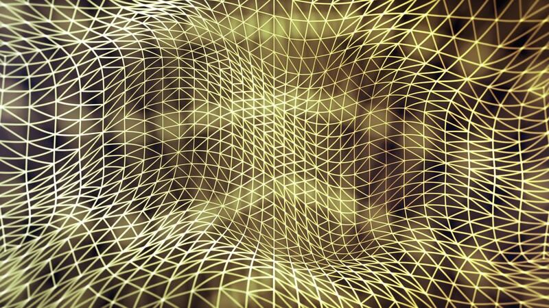 Abstract golden glowing wireframe mesh wave on dark background. Futuristic geometric digital network, topography, and big data visualization. Pro Video