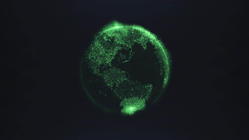 Futuristic green particle Earth rotating in dark space, forming continents with glowing dots. Perfect for tech, global network, data, and digital concepts. Pro Video