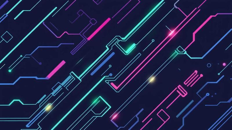 abstract digital circuit patterns with glowing neon lines and geometric shapes Free Video