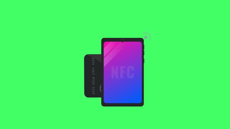 Modern animation of a card attached to a smartphone with a Wi-Fi symbol. Concept of topping up a card balance via NFC Pro Video