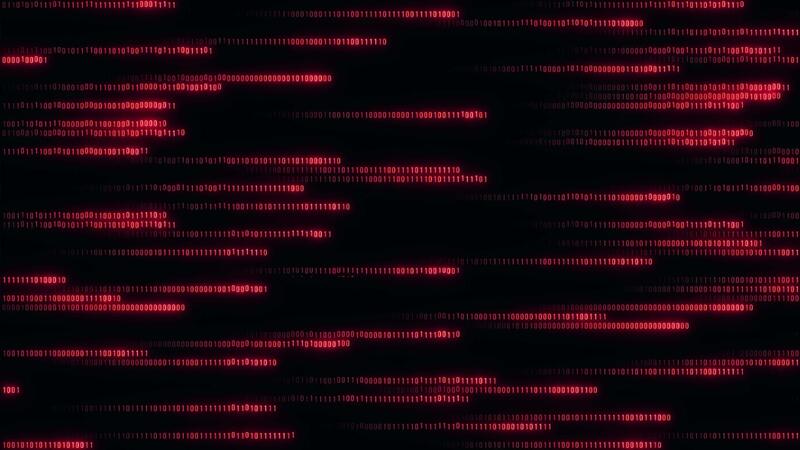 Red binary ones and zeros flow across dark screen digital motion background Free Video