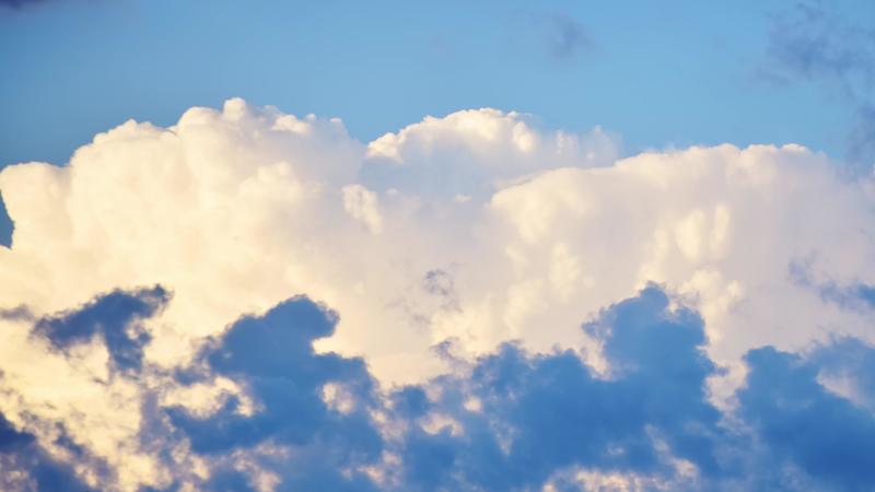 Static time lapse bright dynamic cumulus clouds background blank space with passing blue rain clouds Pro Video
