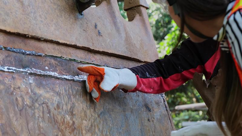 Asian engineering manager and mechanic worker working in a helmet while discussing and inspecting the manufacturing process in the factory. Pro Video