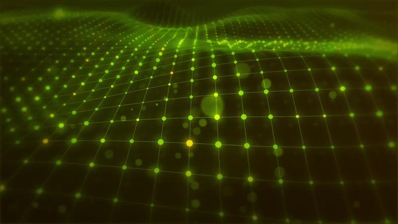 Yellow digital particles wave and Digital data network connections for technology background concept. Pro Video