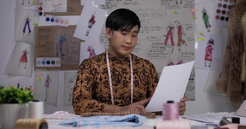 Portrait of fashion designer man checking the quality and design in the studio. Startup small businessman is in process of creating a new clothes collection. Free Video