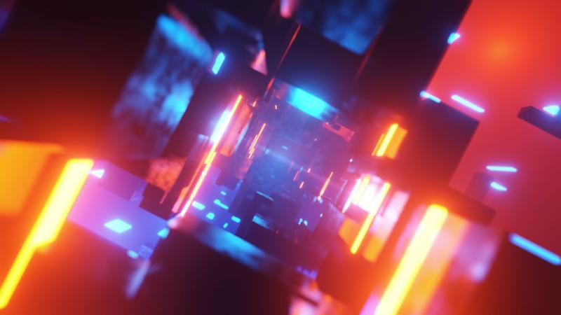Abstract Futuristic tunnel Laser Cube geometric cyberspace wormhole Cyberpunk Background 3D rendering Pro Video