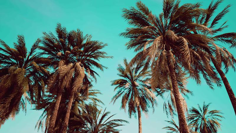 Underside of the coconuts tree with clear sky and shiny sun Pro Video