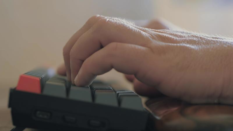 man is typing on the keyboard. gray keyboard with orange button Free Video