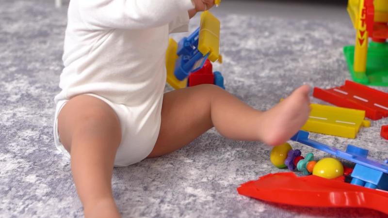 Baby exploring while playing. The baby who develops while playing, learns and discovers life. This is a Slow motion video. Pro Video