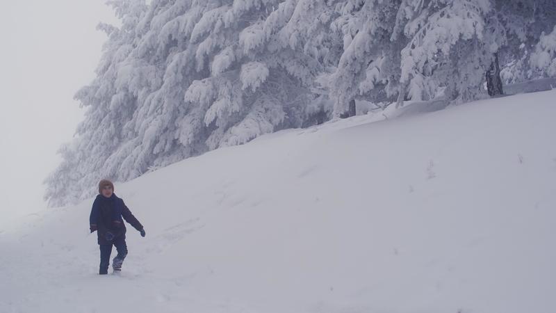 Child walking forcefully in the snow. The happy state of the child walking with difficulty due to the height of snow draws attention. Pro Video